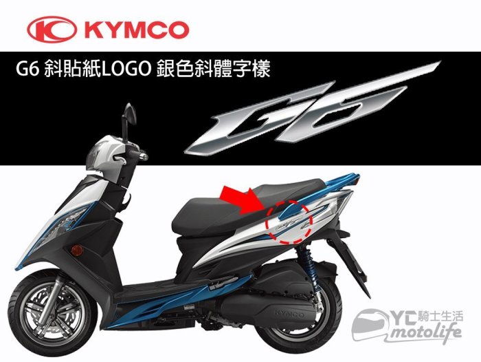 優寶購物《ubao.Tw》特貨品商城,黑貓宅配,取貨付款,YC騎士生活_KYMCO光陽原廠 新G6 斜貼紙 銀色斜體字樣 貼紙 主貼紙 SR25FF、SR30GE、SR30GF | Yahoo拍賣