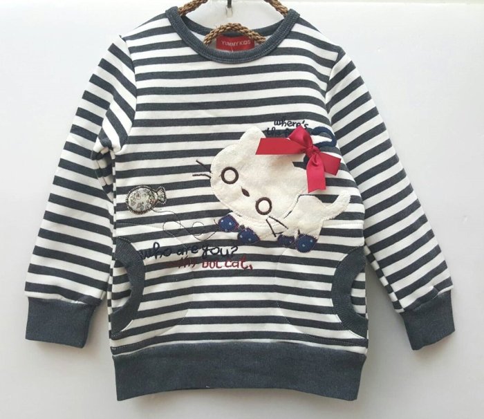 優寶購物《ubao.Tw》特貨品商城,黑貓宅配,取貨付款,小蜜桃精緻童裝衣舖**15121805灰色橫條小貓咪刷毛棉T出清價150元可面交 | Yahoo拍賣