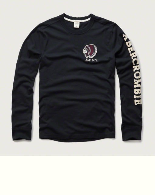 優寶購物《ubao.Tw》特貨品商城,黑貓宅配,取貨付款,Maple麋鹿小舖 Abercrombie&Fitch * AF 深藍色印地安電繡貼布長T *( 現貨XXL號 ) | Yahoo拍賣