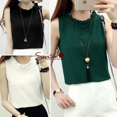 優寶購物《ubao.Tw》特貨品商城,黑貓宅配,取貨付款,【V1018】SMILE-都會名媛.純色花瓣領寬鬆無袖背心上衣 | Yahoo拍賣