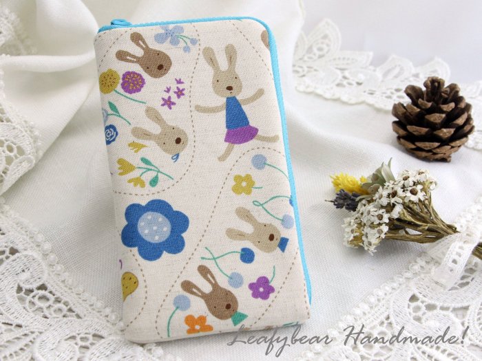 優寶購物《ubao.Tw》特貨品商城,黑貓宅配,取貨付款,✿葉手作✿花漾法國兔(藍)L型拉鍊手機袋iphone ASUS Sony 其他廠牌皆可訂做 | Yahoo拍賣