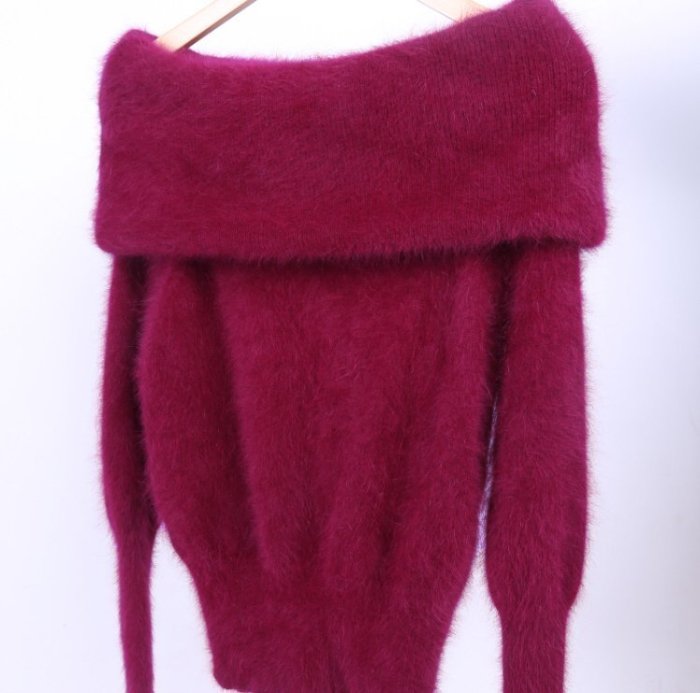 優寶購物《ubao.Tw》特貨品商城,黑貓宅配,取貨付款,[ ohya梨花 ] =韓國帶回=最新秋冬新款性感名媛穿搭一字領露肩翻領紅色水貂毛毛衣 | Yahoo拍賣