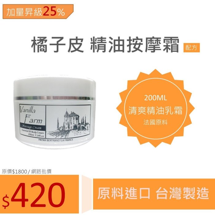 優寶購物《ubao.Tw》特貨品商城,黑貓宅配,取貨付款,【橘子皮霜】清爽精油乳霜 肌膚橘皮狀態專用.肌膚細緻有彈性 配按摩刷 包保鮮膜 200ml 3瓶免運 香草農場 | Yahoo拍賣