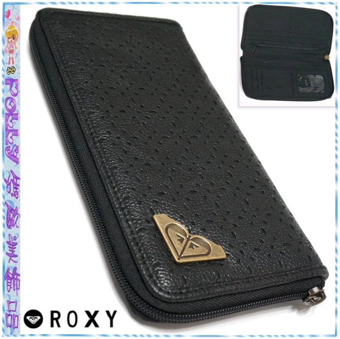 優寶購物《ubao.Tw》特貨品商城,黑貓宅配,取貨付款,↘特價歐美ROXY鏤空剪花黑色荔枝皮拉鏈長夾21×11×2cm | Yahoo拍賣