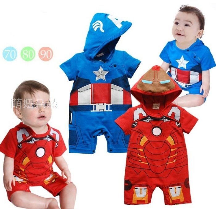 優寶購物《ubao.Tw》特貨品商城,黑貓宅配,取貨付款,♥萌妞朵朵♥復仇者聯盟造型哈衣 美國隊長/鋼鐵人造型哈衣 爬服 彌月禮 拍照必備款 | Yahoo拍賣