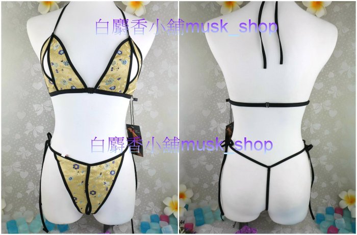 優寶購物《ubao.Tw》特貨品商城,黑貓宅配,取貨付款,單一尺寸F-成套金色後宮系列中國梅花綢緞露咪咪比基尼+開洞丁字褲-32111*白麝香小舖*全新MURENA夢漣娜性感系列 | Yahoo拍賣