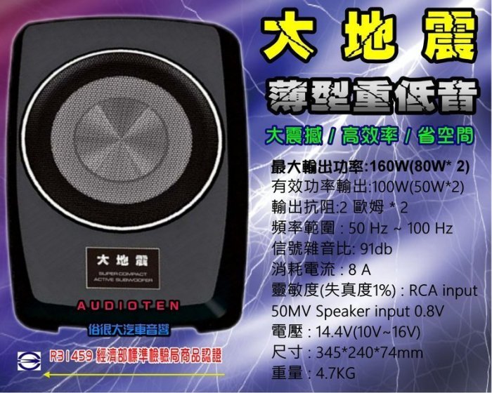 優寶購物《ubao.Tw》特貨品商城,黑貓宅配,取貨付款,俗很大~台灣大地震 8吋薄型重低音 內建擴大機 鋁合金鑄造 低音效果最佳非MBQ(現代 SANTA FE ) | Yahoo拍賣