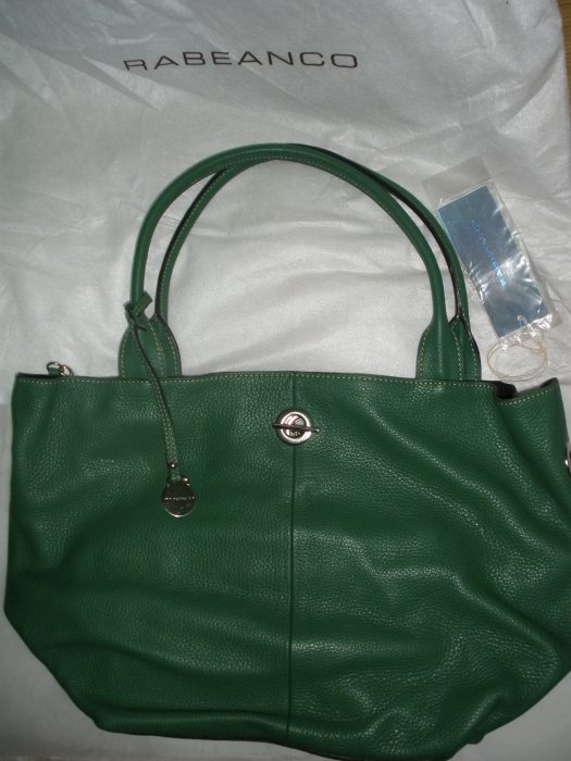 優寶購物《ubao.Tw》特貨品商城,黑貓宅配,取貨付款,RABEANCO 綠色 全真皮 牛皮 A4 肩背 手提 經典款 大方 水餃包 托特 專櫃正品 全新 | Yahoo拍賣