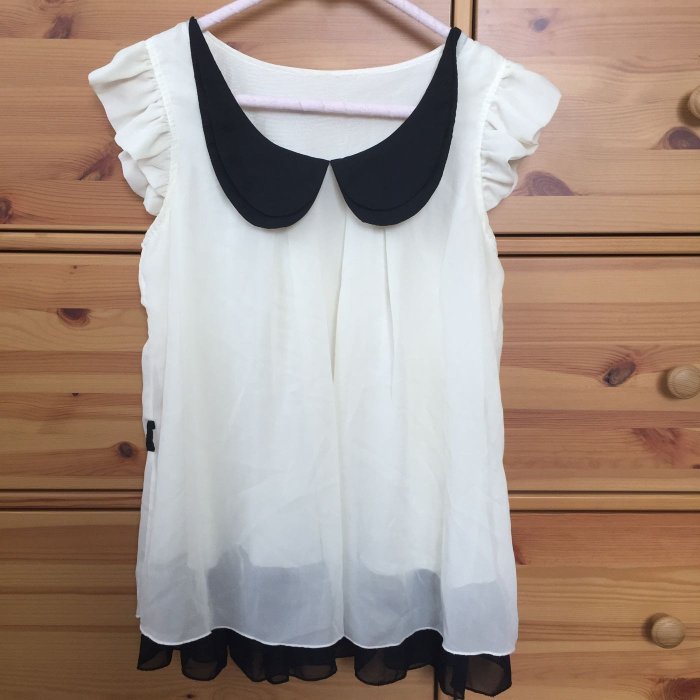 優寶購物《ubao.Tw》特貨品商城,黑貓宅配,取貨付款,Bear house ma4 袖口荷葉邊樣式設計 雙層下擺 雪紡上衣 | Yahoo拍賣
