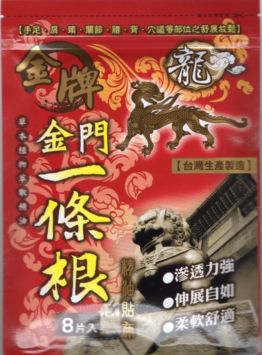 優寶購物《ubao.Tw》特貨品商城,黑貓宅配,取貨付款,龍牌 {*買10送2*}金牌 金門 一條根 *精油貼布 *8片入/包 11cm X 15cm- | Yahoo拍賣
