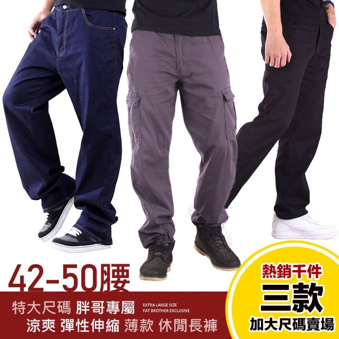 優寶購物《ubao.Tw》特貨品商城,黑貓宅配,取貨付款,【加大尺碼.兩件$900免運】42腰-50腰 夏日涼感 高彈力 素面百搭 薄款 休閒長褲 多款任選 | Yahoo拍賣