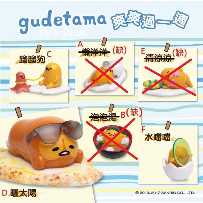 優寶購物《ubao.Tw》特貨品商城,黑貓宅配,取貨付款,[ P & S ] 蛋黃哥 - 爽爽過一週 全套共 6 款 單賣 ( 不含糖果 ) | Yahoo拍賣