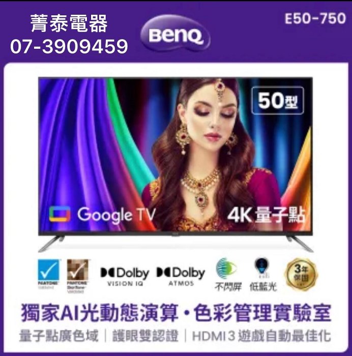 優寶購物《ubao.Tw》特貨品商城,黑貓宅配,取貨付款,☎『6月特價免運費』BENQ【E50-750】明碁 50吋 4K聯網 量子點護眼液晶顯示器 Google TV AI光動態演算技術 10億全色色階 畫面真實立體 | Yahoo拍賣