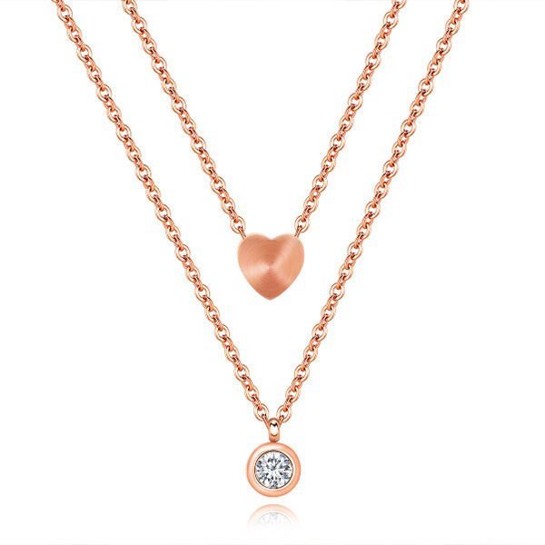 優寶購物《ubao.Tw》特貨品商城,黑貓宅配,取貨付款,《 QBOX 》FASHION 飾品【C100N1348】精緻秀氣雙層鍊愛心圓鑽玫瑰金鈦鋼墬子項鍊 | Yahoo拍賣