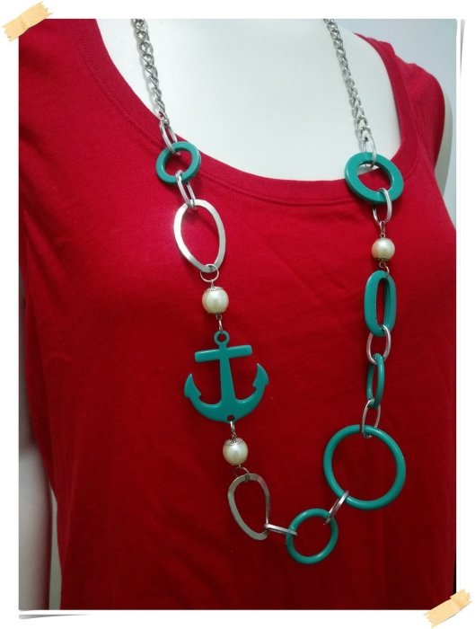 優寶購物《ubao.Tw》特貨品商城,黑貓宅配,取貨付款,免運特價。XING【全新專櫃商品】水綠色 時尚海洋風船錨圓環壓克力接圓珠造型圓目金屬銀鍊長版項鍊。 | Yahoo拍賣