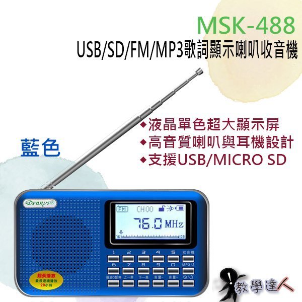 優寶購物《ubao.Tw》特貨品商城,黑貓宅配,取貨付款,《教學達人》* (MS-K488) Dennys USB/SD/FM/MP3歌詞顯示喇叭收音機 旅行 娛樂 (藍色款) | Yahoo拍賣