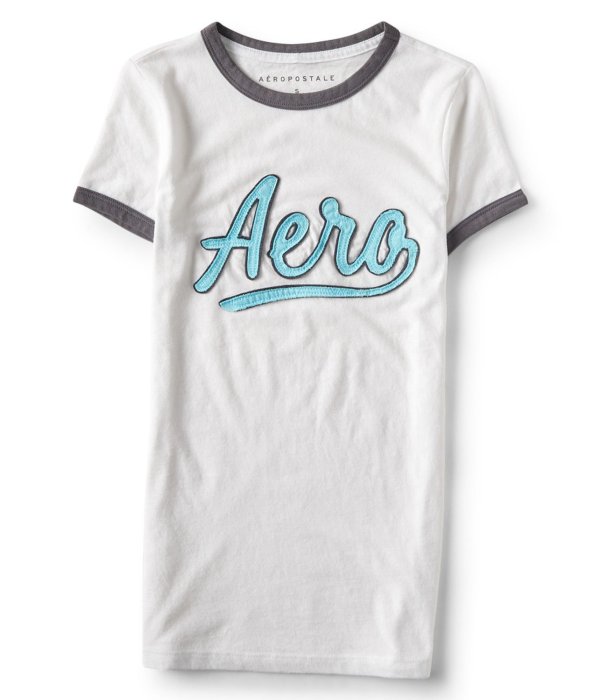 優寶購物《ubao.Tw》特貨品商城,黑貓宅配,取貨付款,美國Aeropostale女裝Aero Logo Ringer Graphic T 白底藍圓領XL號貼布清爽短T含運 | Yahoo拍賣