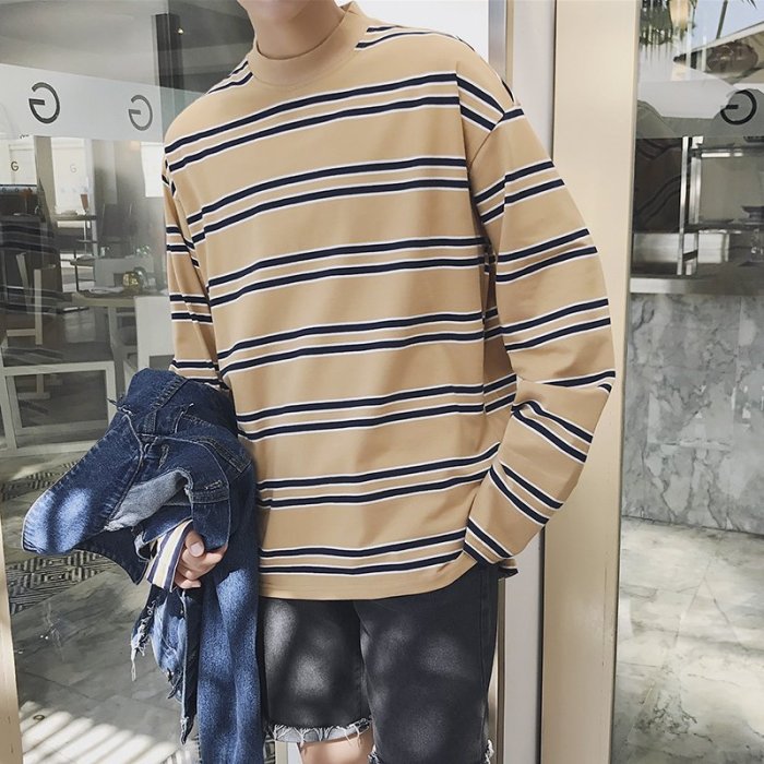 優寶購物《ubao.Tw》特貨品商城,黑貓宅配,取貨付款,條紋T恤 M-3XL 時尚新款 長袖TEE 男潮流休閑 寬鬆 韓版條紋上衣打底衫 2色 大尺碼 拉風閣 | Yahoo拍賣
