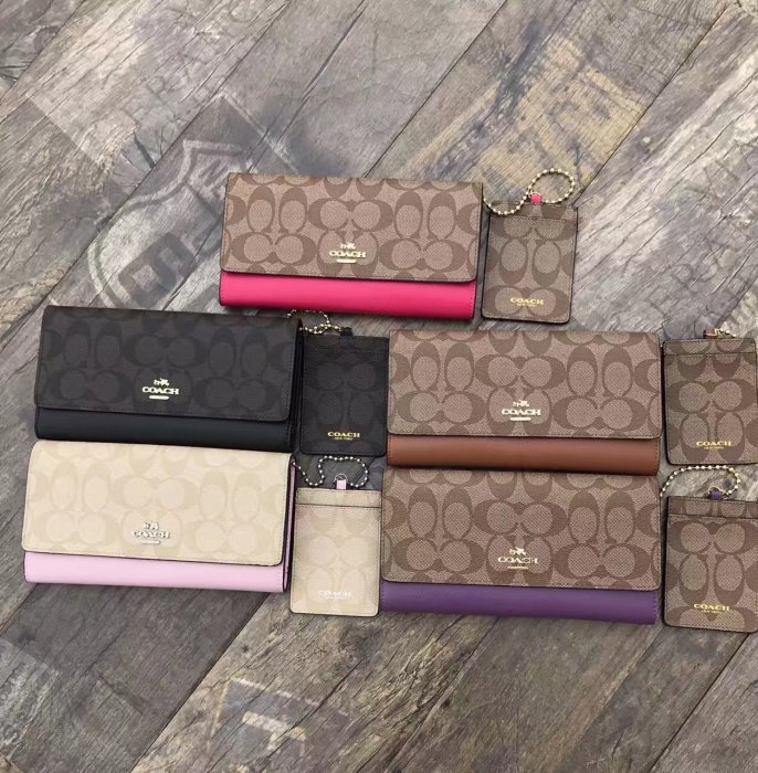優寶購物《ubao.Tw》特貨品商城,黑貓宅配,取貨付款,空姐精品代購 COACH 53763 經典熱賣款 PVC拼皮 皮色女士 翻蓋三折長夾 長款錢包 內附可拆卸證件套 附購證 | Yahoo拍賣