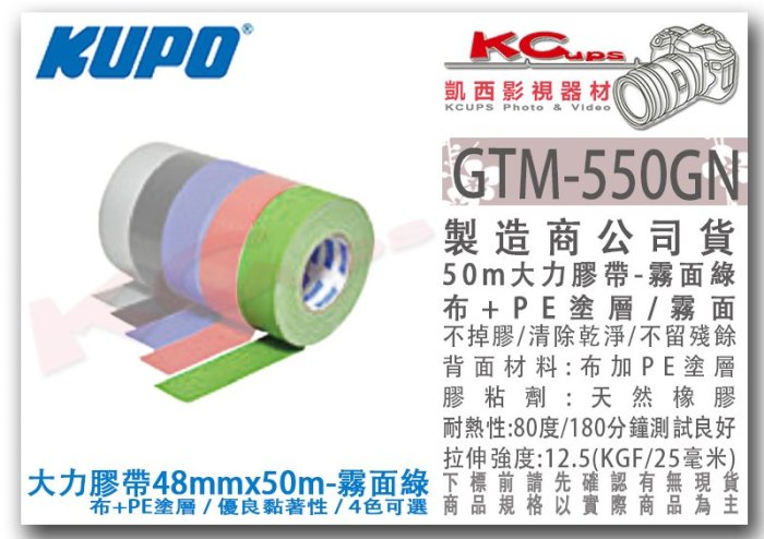 優寶購物《ubao.Tw》特貨品商城,黑貓宅配,取貨付款,凱西影視器材 【 KUPO GTM-550LGN 霧面 消光 綠 大力膠帶 布+PE塗料 】 動態 攝影 場佈 美術 | Yahoo拍賣