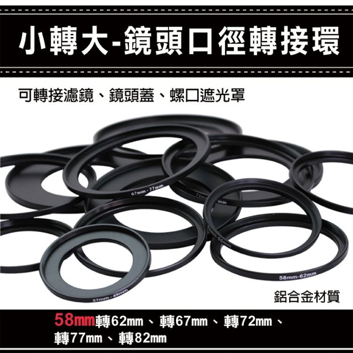 優寶購物《ubao.Tw》特貨品商城,黑貓宅配,取貨付款,全新現貨@無敵兔@通用副廠配件小轉大-鏡頭口徑轉接環 58mm 轉 62 67 72 77 82mm 轉接環 彰化市 | Yahoo拍賣