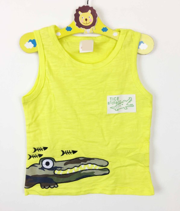 優寶購物《ubao.Tw》特貨品商城,黑貓宅配,取貨付款,全館滿699免運【MONKEY BABY 】竹節棉鱷魚圖案螢光黃無袖T恤 | Yahoo拍賣