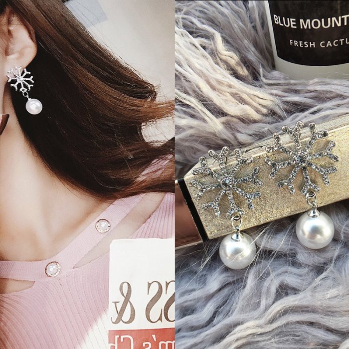 優寶購物《ubao.Tw》特貨品商城,黑貓宅配,取貨付款,日韓國氣質百搭珍珠吊墜雪花耳墜耳環女學生水晶耳釘耳環雪花珍珠耳環 | Yahoo拍賣