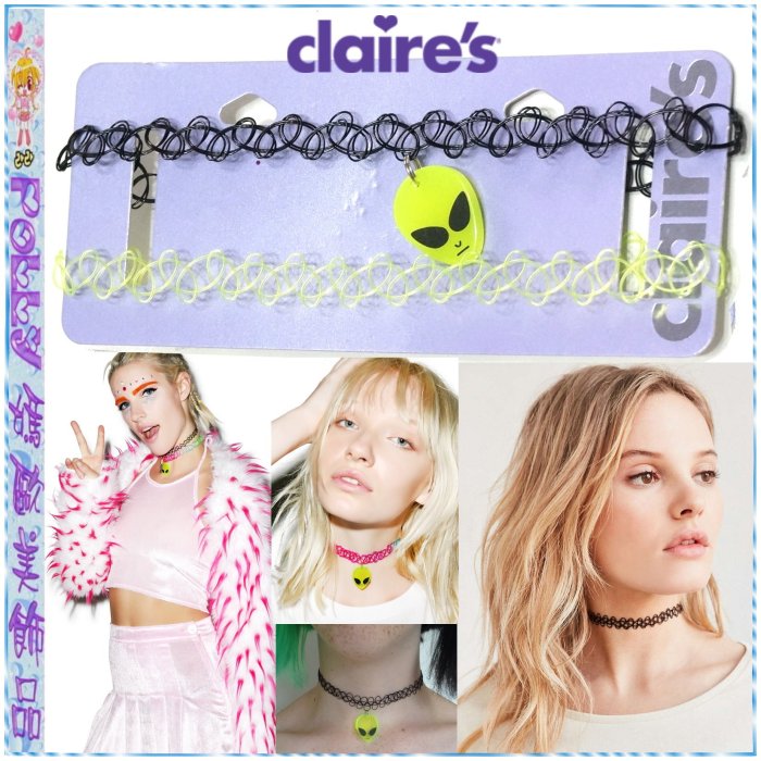 優寶購物《ubao.Tw》特貨品商城,黑貓宅配,取貨付款,↘五折歐美claire‵s Tattoo Choker外星人壓克力墜螢光黃綠黑色仿刺青頸鍊二條一組 | Yahoo拍賣