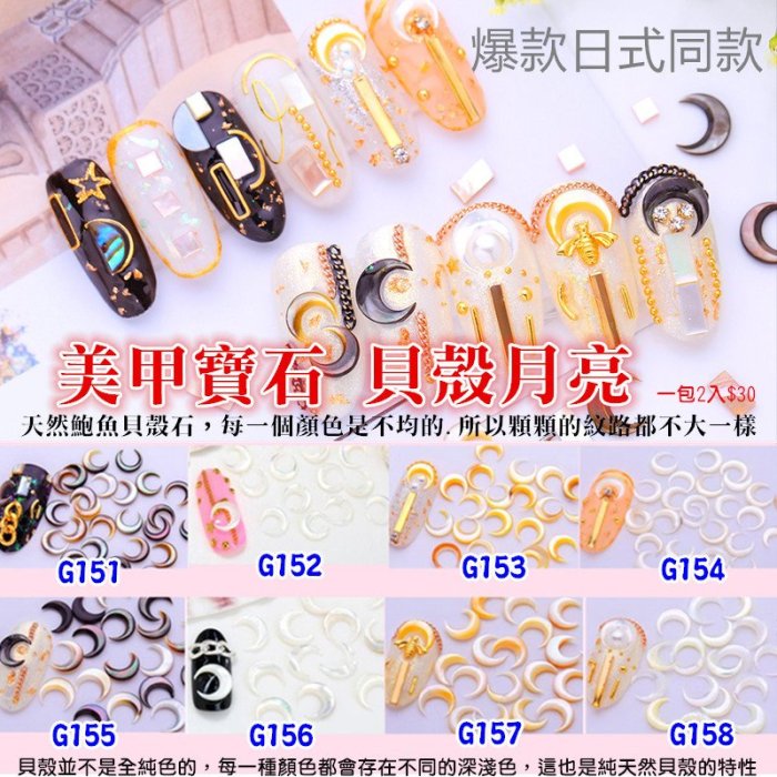 優寶購物《ubao.Tw》特貨品商城,黑貓宅配,取貨付款,【幻彩美甲】 (美甲寶石 G151~G158 )美甲飾品 指甲小配件 日式同款 美甲寶石 奢華貝殼 異形月牙形 貝殼月亮 | Yahoo拍賣