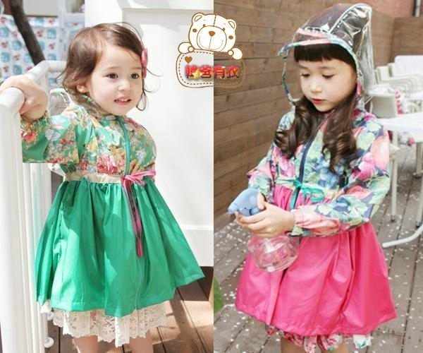 優寶購物《ubao.Tw》特貨品商城,黑貓宅配,取貨付款,現貨特價出清(綠色5/粉色5)『韓爸有衣韓國童裝』♥ SAL50120-025 花朵印花雨衣 | Yahoo拍賣