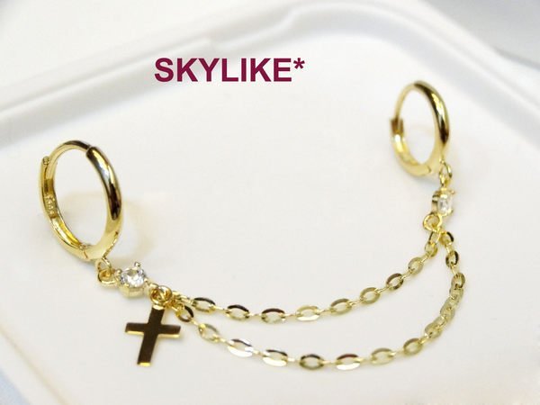 優寶購物《ubao.Tw》特貨品商城,黑貓宅配,取貨付款,*SKYLIKE* 最可愛-韓國進口585/14K黃K金亮面~小十字雙鍊~耳垂連耳骨單邊易扣鋯石耳環TO-88324s^ | Yahoo拍賣