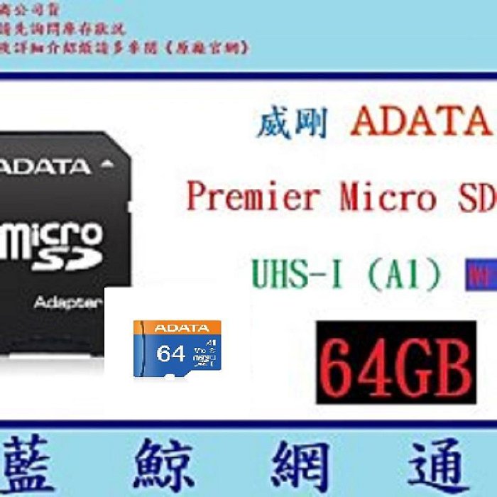 優寶購物《ubao.Tw》特貨品商城,黑貓宅配,取貨付款,【藍鯨】ADATA 威剛 64G 64GB microSD micro SDXC TF UHS-I U1 A1 V10 | Yahoo拍賣
