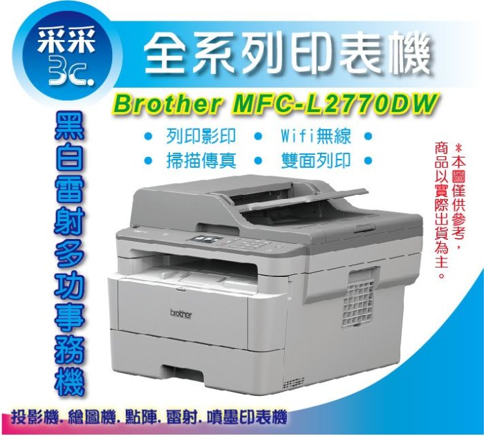 優寶購物《ubao.Tw》特貨品商城,黑貓宅配,取貨付款,采采3C【含稅+登錄送飛利浦延長線】Brother MFC-L2770DW/L2770 黑白雷射複合機 含原廠碳粉 | Yahoo拍賣