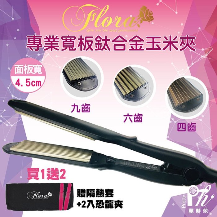 優寶購物《ubao.Tw》特貨品商城,黑貓宅配,取貨付款,【麗髮苑】送隔熱套+夾 FLORA 薄型寬版玉米夾 美髮沙龍 設計師用 美髮沙龍 鈦合金玉米夾 4W/6W/9W | Yahoo拍賣