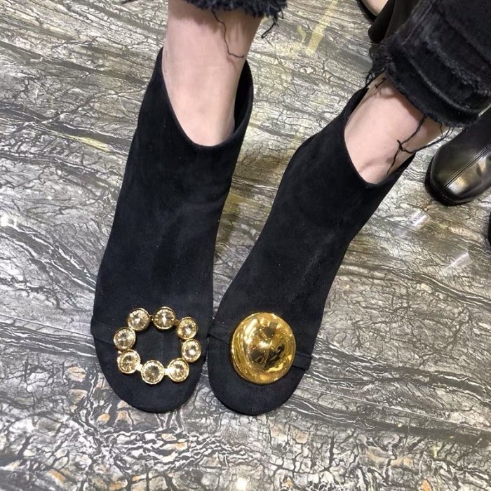 優寶購物《ubao.Tw》特貨品商城,黑貓宅配,取貨付款,[ ohya梨花 ] =最新秋冬新款=韓妞個性穿搭黑底金色不對稱釘飾造型踝靴短靴高跟鞋 | Yahoo拍賣