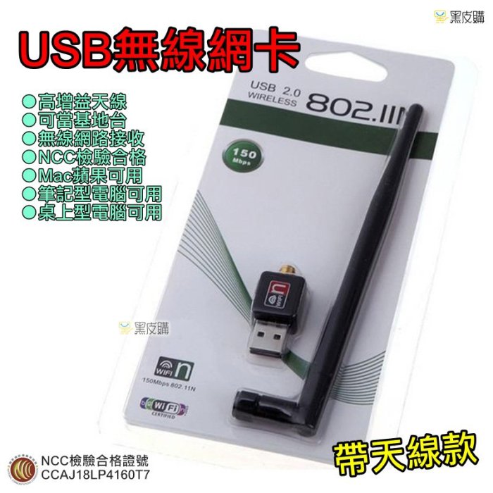 優寶購物《ubao.Tw》特貨品商城,黑貓宅配,取貨付款,USB迷你無線網卡 高速150M 支援XP/W7/W8/W10 無線網路卡 帶增益天線 桌機 筆電使用WiFi | Yahoo拍賣