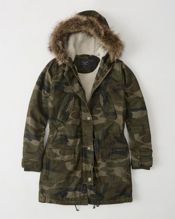 優寶購物《ubao.Tw》特貨品商城,黑貓宅配,取貨付款,Maple麋鹿小舖 Abercrombie&Fitch * A&F 迷彩長版內鋪毛毛連帽外套 *( 現貨XS號 ) | Yahoo拍賣
