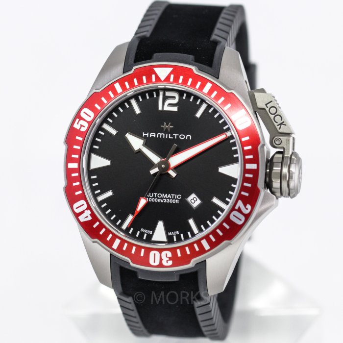 優寶購物《ubao.Tw》特貨品商城,黑貓宅配,取貨付款,HAMILTON 1000米蛙人 漢米爾頓 H77805335 手錶 機械錶 46mm 鈦金屬 紅蛙 | Yahoo拍賣