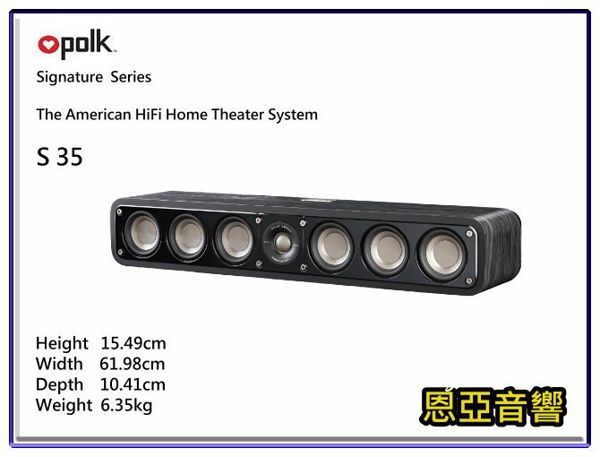 優寶購物《ubao.Tw》特貨品商城,黑貓宅配,取貨付款,【恩亞音響】黑、白色可選公司貨 美國 Polkaudio Signature Series S35中置喇叭1支 | Yahoo拍賣