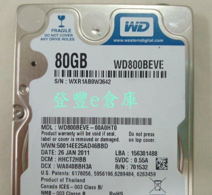 優寶購物《ubao.Tw》特貨品商城,黑貓宅配,取貨付款,【登豐e倉庫】 YF479 WD800BEVE-00A0HT0 80G IDE 筆電硬碟 | Yahoo拍賣