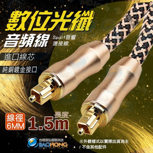 優寶購物《ubao.Tw》特貨品商城,黑貓宅配,取貨付款,含稅】1.5米公尺 頂級數位光纖線 OD6線徑 24K鍍金頭 Toslink (Optical) cable SPDIF | Yahoo拍賣