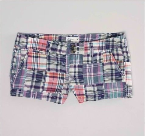 優寶購物《ubao.Tw》特貨品商城,黑貓宅配,取貨付款,美國老鷹American Eagle 女裝 AE Patchwork Shortie 2號柔軟輕巧補補風格紋短褲含運在台 | Yahoo拍賣