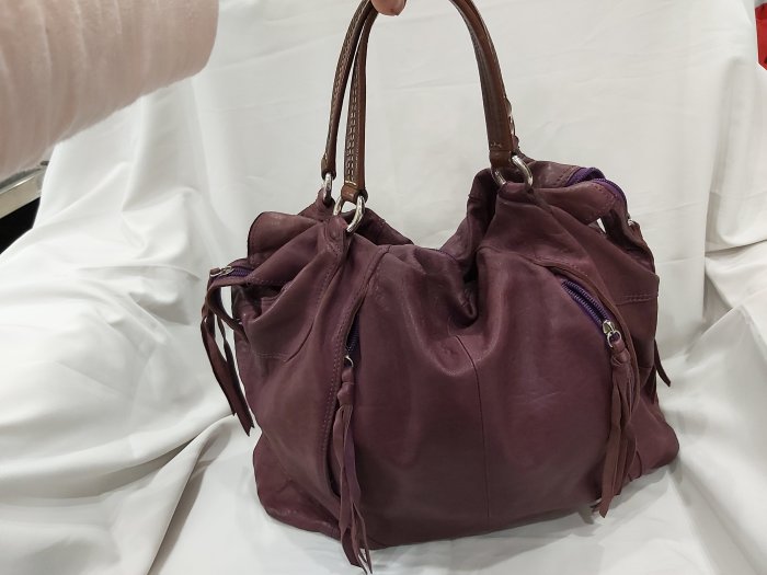 優寶購物《ubao.Tw》特貨品商城,黑貓宅配,取貨付款,【七彩魚】PP咖紫色抓皺牛皮手提包 特大軟包 (經典RABEANCO樣式) | Yahoo拍賣