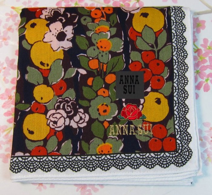 優寶購物《ubao.Tw》特貨品商城,黑貓宅配,取貨付款,Betty's日本古董&精品雜貨§ANNA SUI紅色刺繡花朵手帕/方巾 ~ | Yahoo拍賣