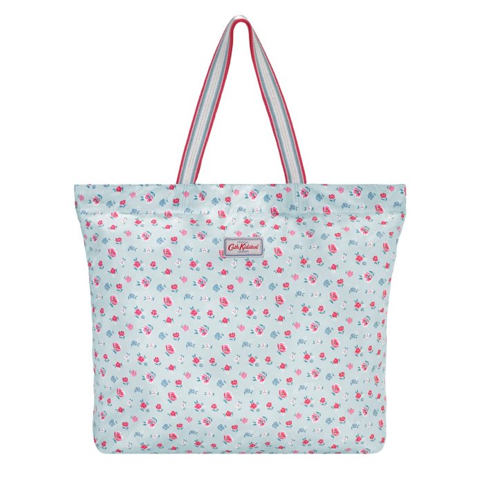 優寶購物《ubao.Tw》特貨品商城,黑貓宅配,取貨付款,【現貨】英國 Cath Kidston 淺藍綠色底 藍紅白花 大折疊手提包 袋口有磁性可扣住 | Yahoo拍賣