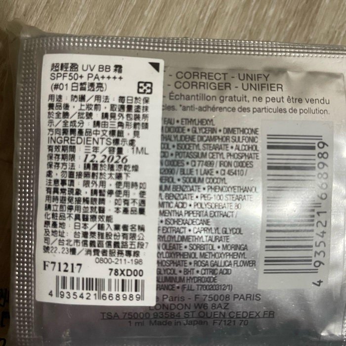 優寶購物《ubao.Tw》特貨品商城,黑貓宅配,取貨付款,蘭蔻【 LANCOME】 超輕盈UVBB霜1ml ( #01白晳透亮保存到2026-12試用包) | Yahoo拍賣