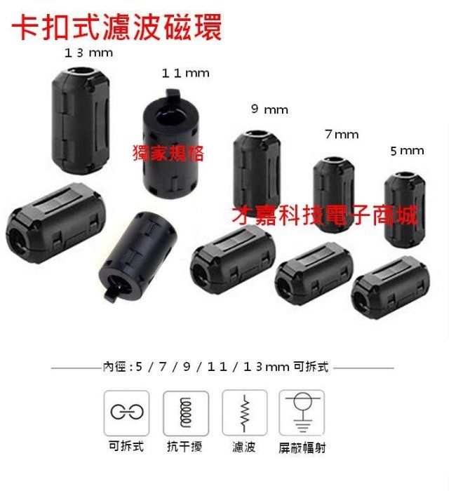 優寶購物《ubao.Tw》特貨品商城,黑貓宅配,取貨付款,【才嘉科技】濾波磁環 帶磁芯消磁環 7mm可拆式 突波抑制 卡扣式 濾波器(附發票) | Yahoo拍賣