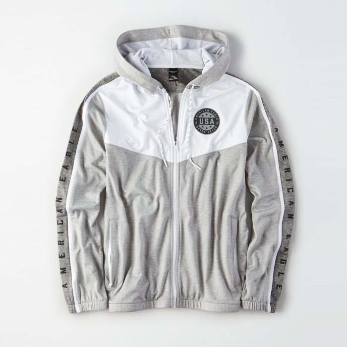 優寶購物《ubao.Tw》特貨品商城,黑貓宅配,取貨付款,【AMERICAN EAGLE】AE男款連帽外套薄款左圓章雙臂字白灰 F03190601-08 | Yahoo拍賣