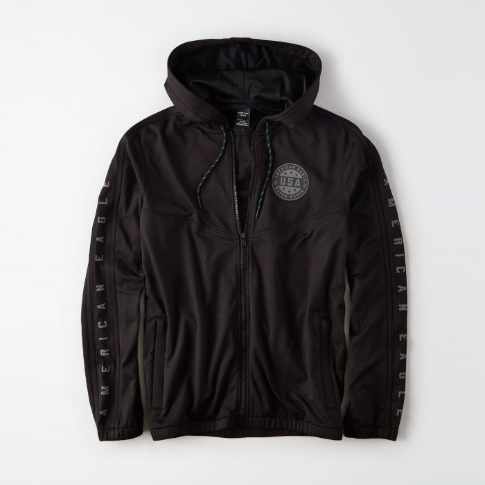 優寶購物《ubao.Tw》特貨品商城,黑貓宅配,取貨付款,【AMERICAN EAGLE】【零碼S】AE男款連帽外套薄款左圓章雙臂字黑 F03190601-09 | Yahoo拍賣
