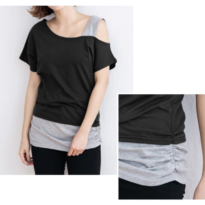 優寶購物《ubao.Tw》特貨品商城,黑貓宅配,取貨付款,【Hao Da】全館399免運↘「M~XL。現貨」2色 假兩件撞色 吊帶露肩上衣 (C1257) | Yahoo拍賣